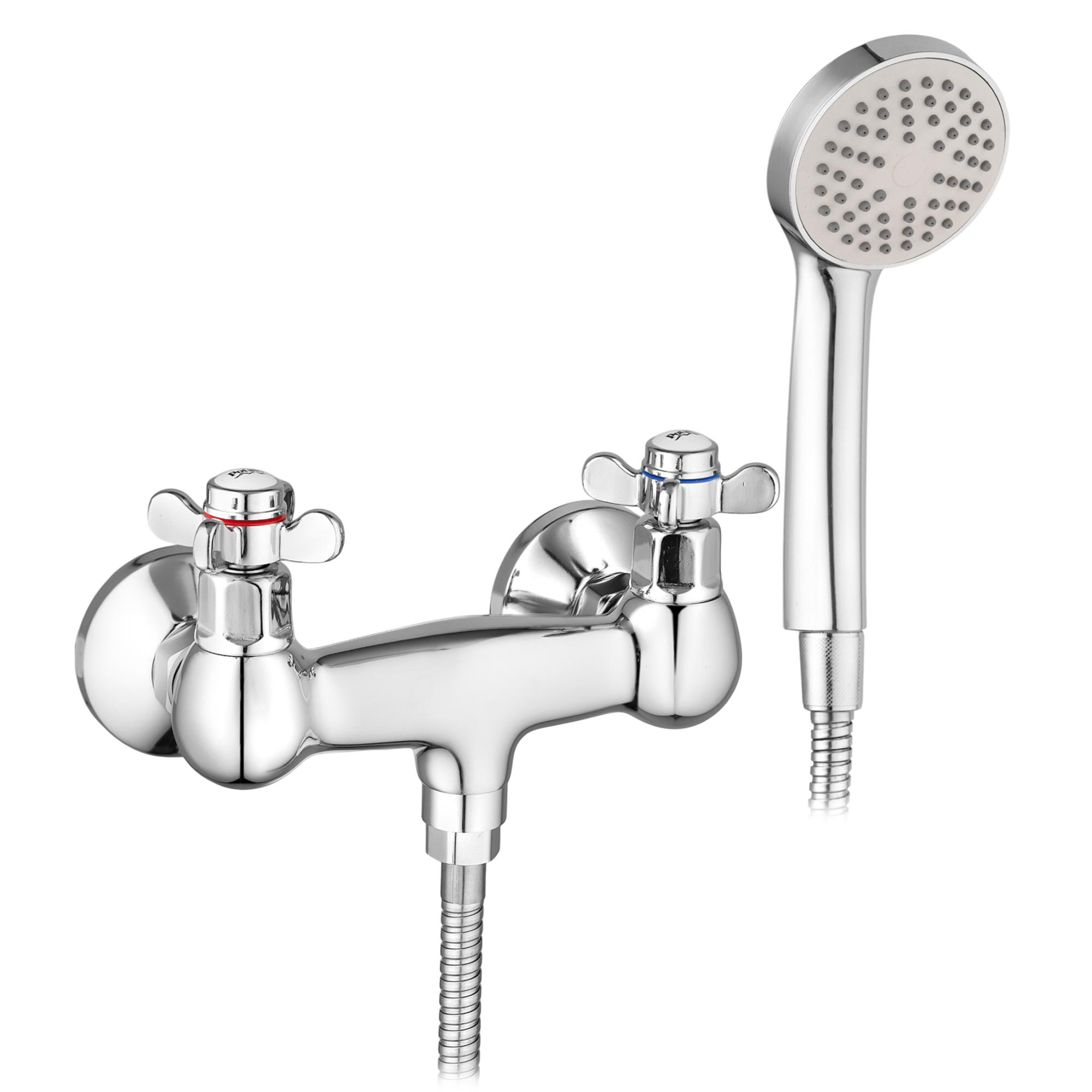 Смеситель для ванной с вентильными ручками, высококачественным шлангом и лейкой выполнен в классическом хромовом цвете. Изящные вентильные ручки сидят четко на кран буксах, которая досконально точно регулирует напор и температуру воды. Корпус смесителя сделан из прочной латуни, а это дает такие преимущества, как: легкий уход, устойчивость к коррозии, корпус не нагревается, широкий выбор дизайнов и цветов, доступная цена, увеличенный срок службы по сравнению со смесителями из силумина, стандартные легкозаменяемые детали. Смеситель для ванной с высококачественным шлангом и лейкой хром наполнит Вашу ванную комнату изяществом и подчеркнет вкус и индивидуальность своего владельца. В комплекте поставляется: смеситель, эксцентрики, чашки, лейка, держатель для лейки, шланг. Лейка изготовлена из качественного abs-пластика в цветах корпуса смесителя в ванную. Легкость и удобство использования такой лейки покажет, что покупатель сделал правильный выбор в пользу данной модели. Габаритные размеры: высота смесителя 120 мм,