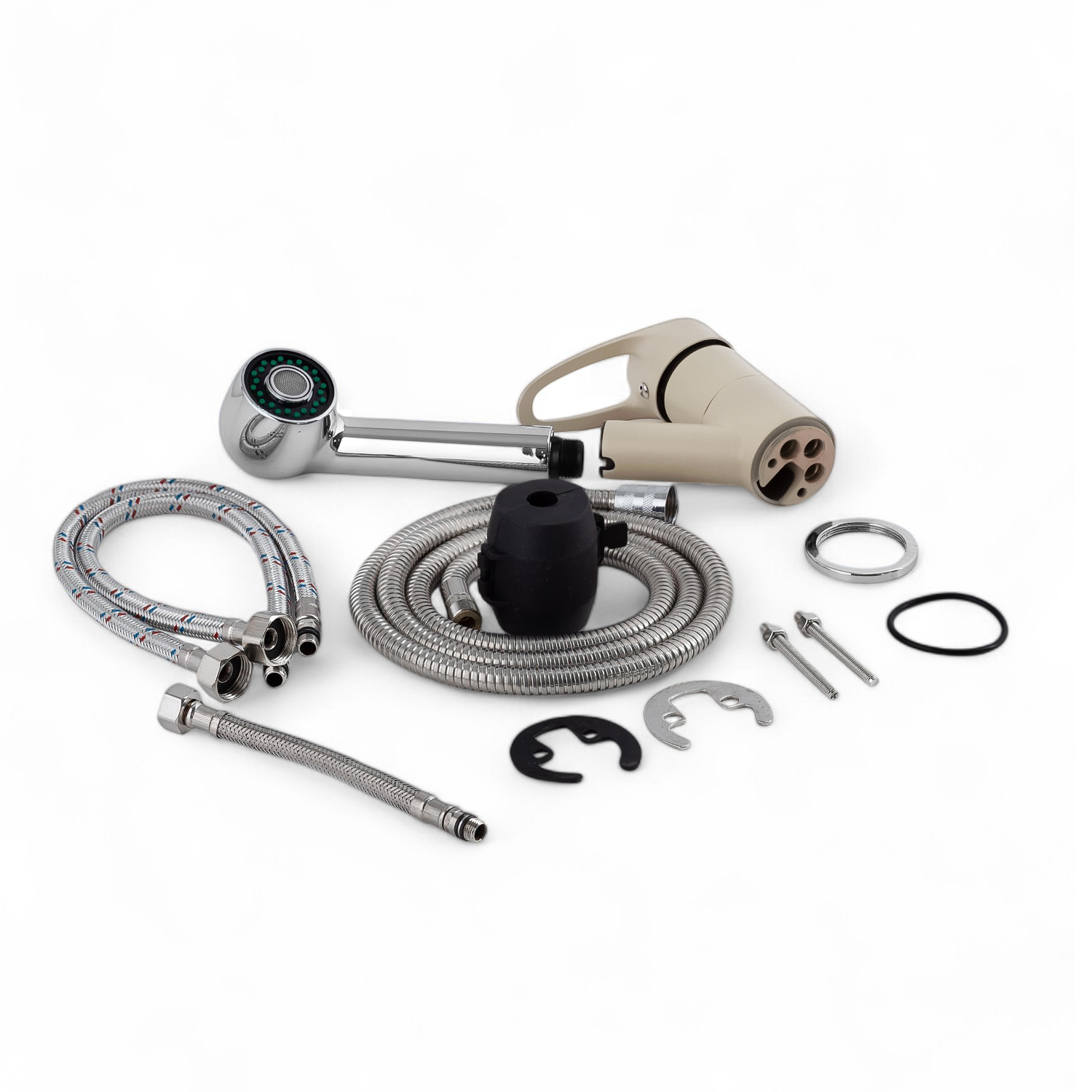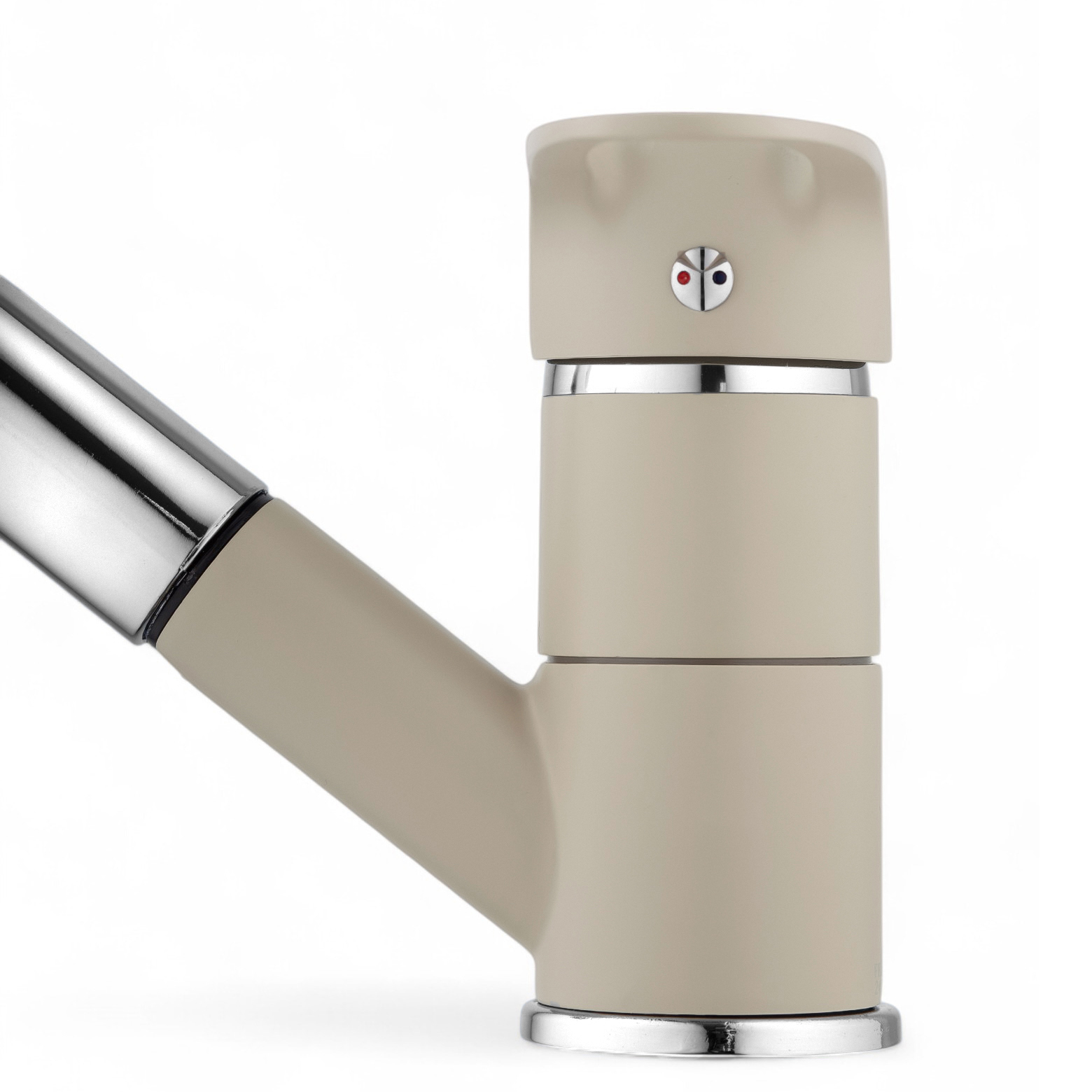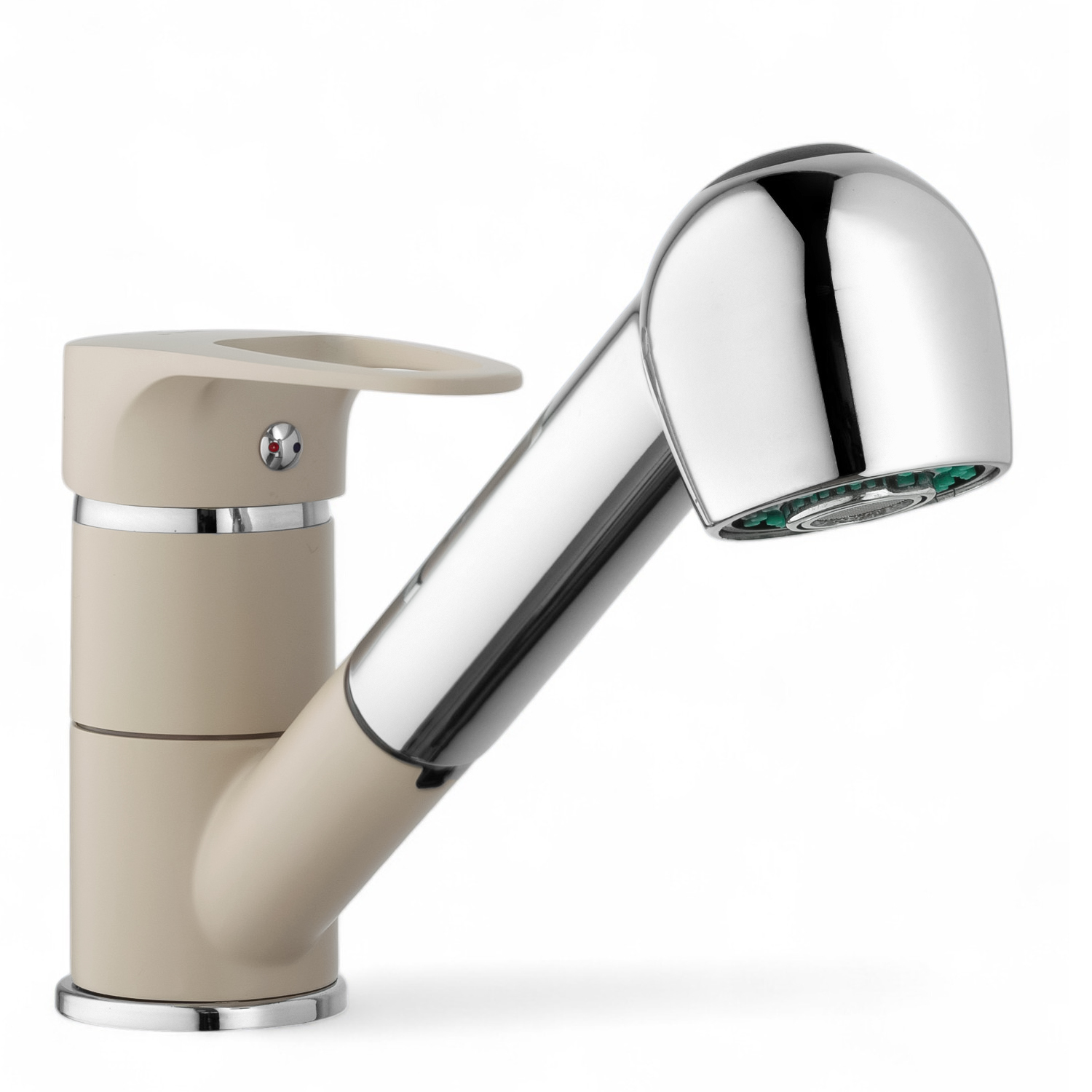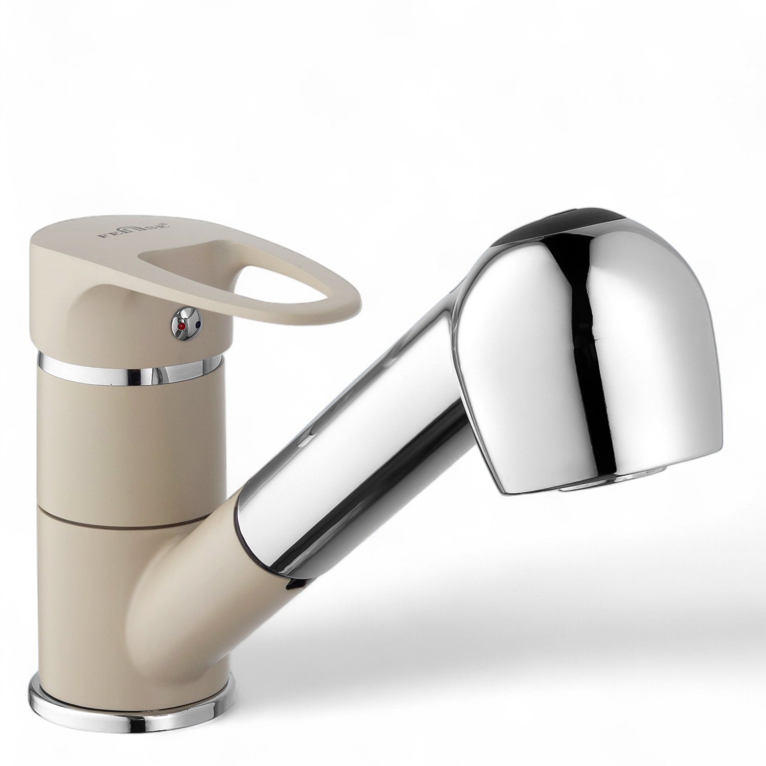 Смеситель для кухни бежевый с вытягивающей лейкой хром