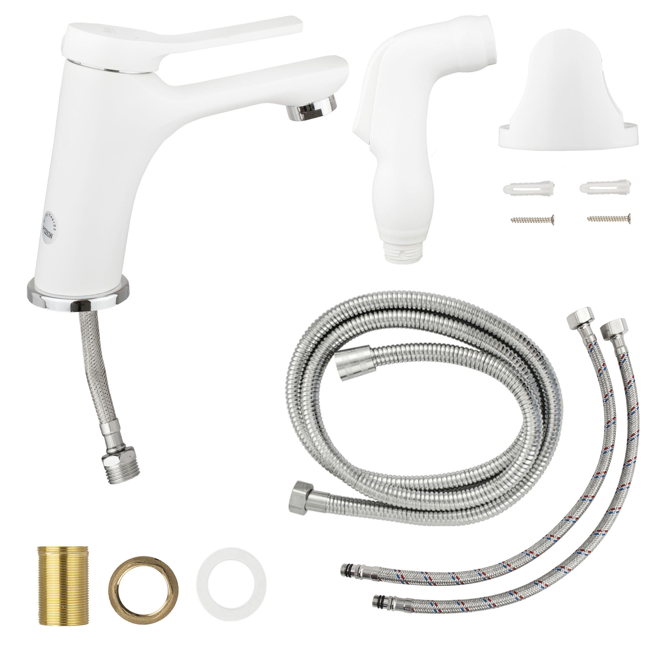 Смеситель для раковины с гигиенической лейкой, БЕЛЫЙ, P12292W