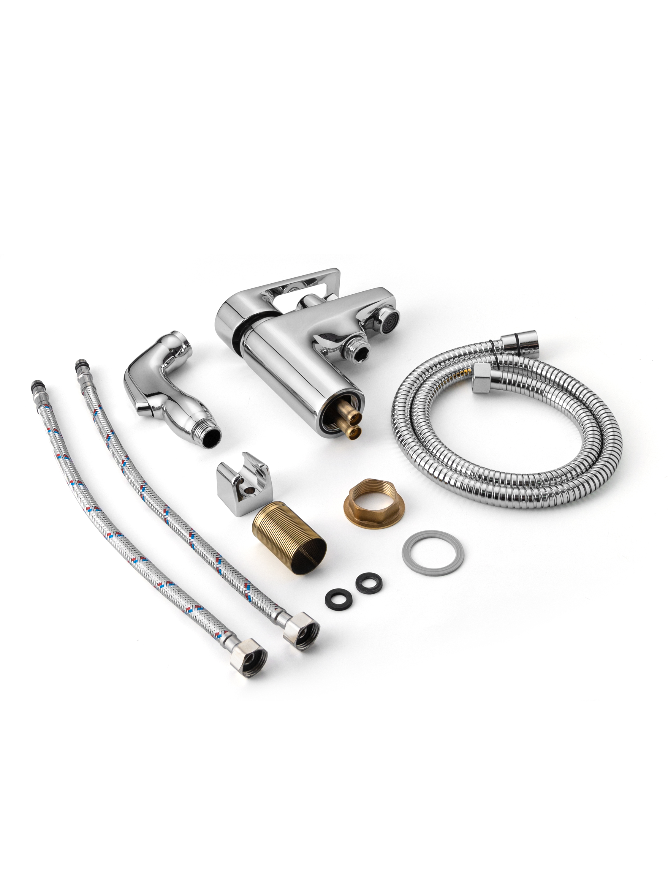 Смеситель для раковины с гигиеническим душем ХРОМ выполнен в классическом дизайне и прекрасно подходит под любой стиль. На изливе смесителя находится поворотный дивертор, который переключает потоки воды из смесителя между смесителем и лейкой. Гигиенический душ со смесителем наполнит Ваш санузел изяществом и подчеркнет вкус и индивидуальность своего владельца. Смеситель можно использовать для мытья рук и лица, а гигиенический душ для поддержания интимной гигиены или для различных хозяйственных целей, таких как набрать воду в ведро, ополоснуть унитаз, под напором смыть загрязнения с пола в сторону канализационного трапа. • Корпус смесителя с гигиеническим душем выполнен из хромированной латуни, которая устойчива к коррозии и облегчает уход за изделием • Гофрированный шланг обладает высокой гибкостью, что обеспечивает удобство в использовании и позволяет легко маневрировать им, устойчив к скручиванию • Мелкодисперсный аэратор на лейке гигиенического душа минимизирует нежелательные брызги, значительно снижает уро