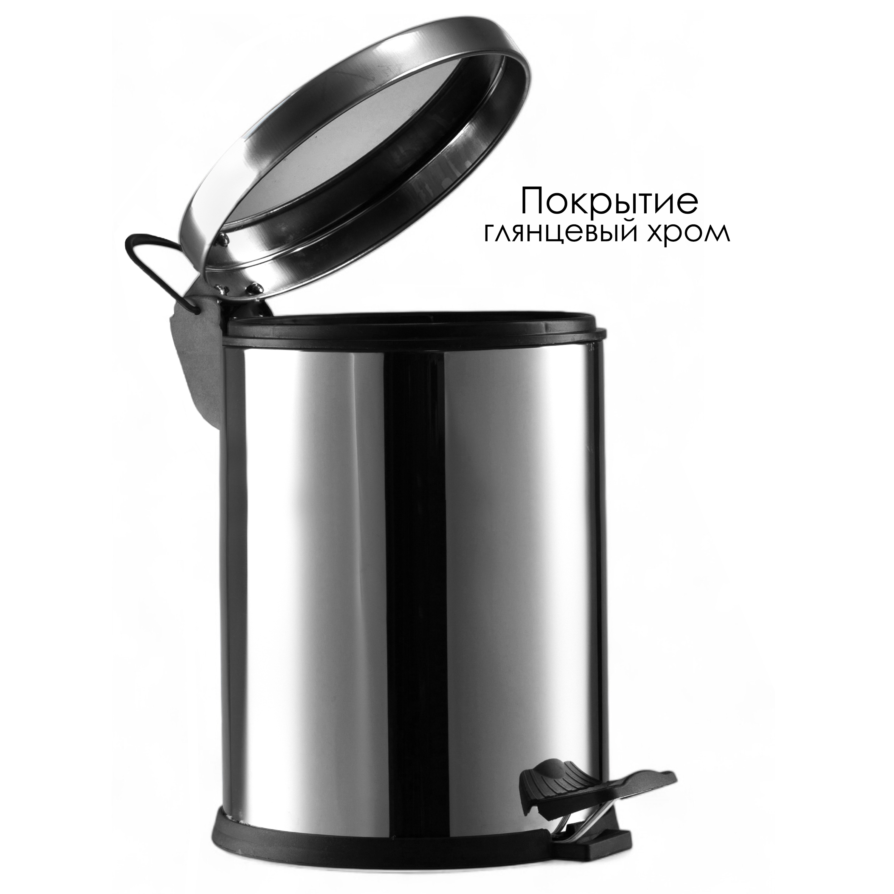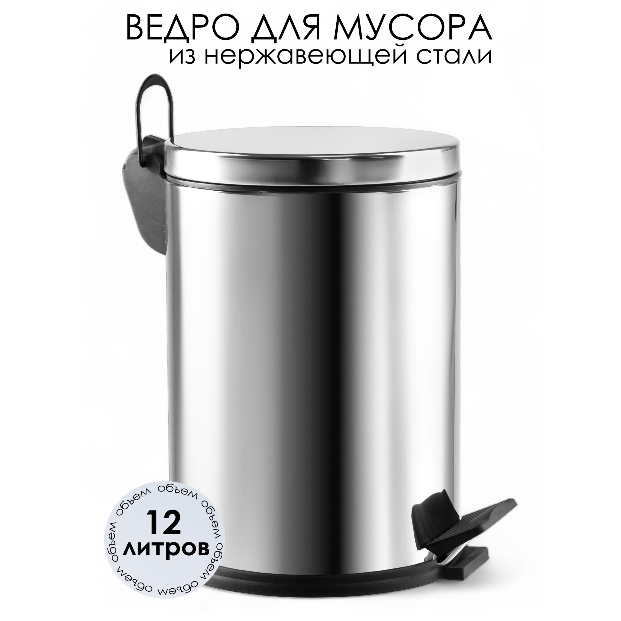 Ведро мусорное с педалью 12 литров, нержавеющая сталь, ХРОМ, EF-405