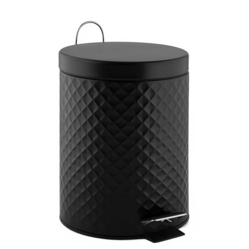 Круглое черное ведро с ромбовидным рисунком из нержавеющей стали 201 марки для кухни и дома с для хранения мусора с красивым ромбовидным узором, с педалью и откидной крышкой, прекрасно подойдет для ванной комнаты, туалета или кухни и офиса. Ведро оснащено пластиковым гигиеническим контейнером и плавным механизмом поднятия - опускание крышки, при помощи нажатия на педаль. Объем ведра 5 литров. Отличное решение для утилизации мелкого бытового мусора. Наличие крышки обеспечивает защиту от неприятных запахов и распространения бактерий, а педальная система открывания позволяет не прикасаться к баку руками. Благодаря современному дизайну ведро впишется в интерьер любой кухни и ванной комнаты. Преимущества ведра для мусора с педалью: удобно устанавливается и перемещается на любое место; изготовлено из устойчивой к коррозии нержавеющей стали; пользоваться изделием удобно и гигиенично благодаря педали в нижней части корпуса. Нескользящая пластиковая основа ведра предотвращает повреждение пола. Габаритные размеры: высо