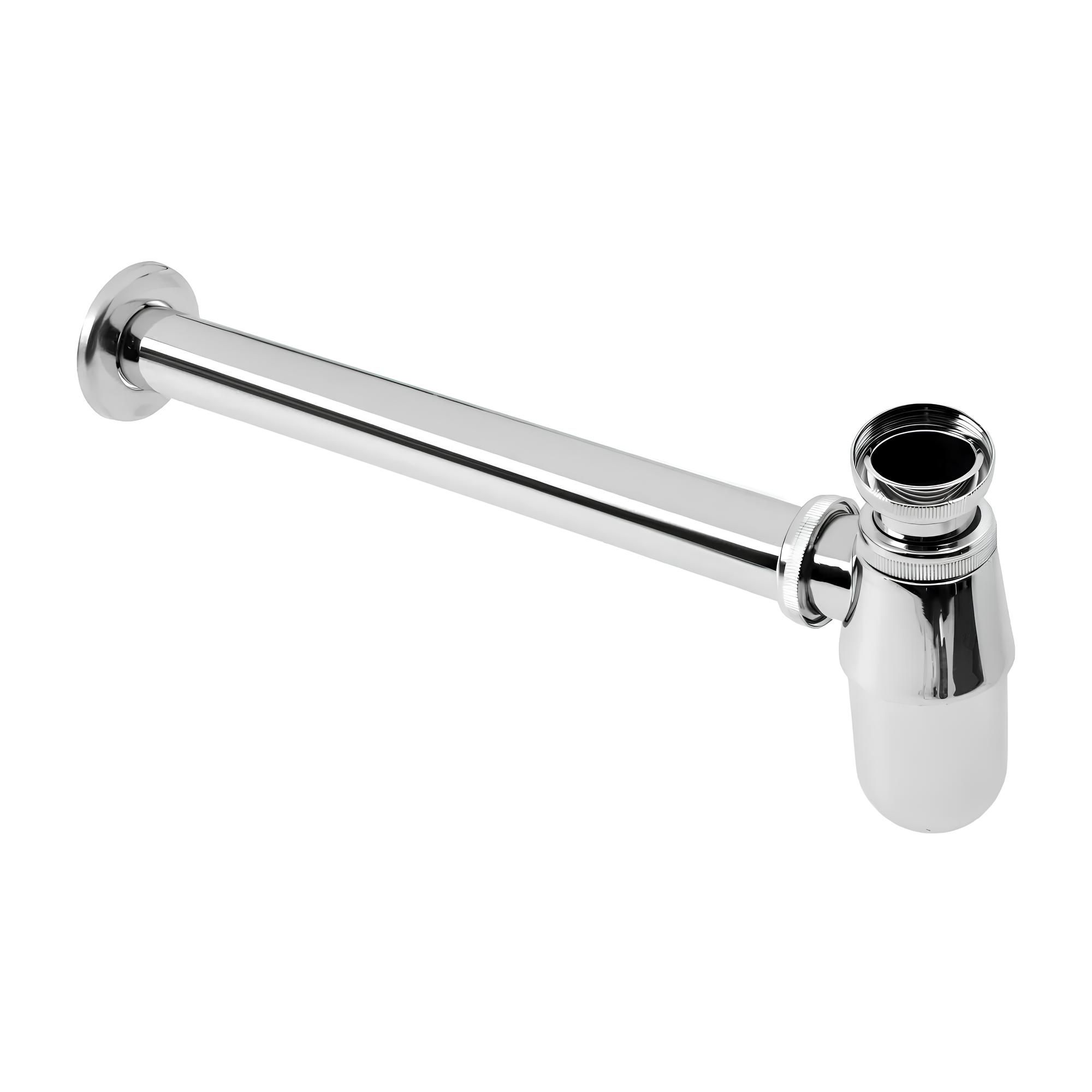 Сифон для раковины хромированного цвета, это эстетичное и функциональное устройство для подключения раковины к системе канализации. Бутылочная модель изготовлена из нержавеющей стали, что обуславливает ее высокую прочность и долговечность. Она устойчива к перепаду температур, поэтому в раковину можно сливать кипяток. Матовая поверхность сохраняет внешний вид даже после длительной эксплуатации, поверхность не требует особого ухода – достаточно просто протереть. Изделие с фиксированной погружной трубкой легко собирается и монтируется. Габаритные размеры: длина трубы горизонтальной 29,5 см, длина трубы вертикальной от 40 до 100 мм без колбы, высота колбы - 120 мм, общаяя высота 140-220 мм, ширина 350 мм. Диаметр труб 32 мм. Вес - 0,400 кг.