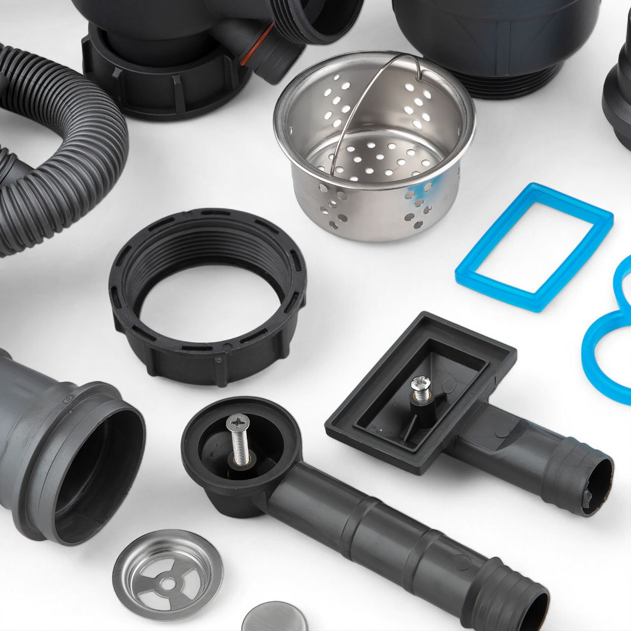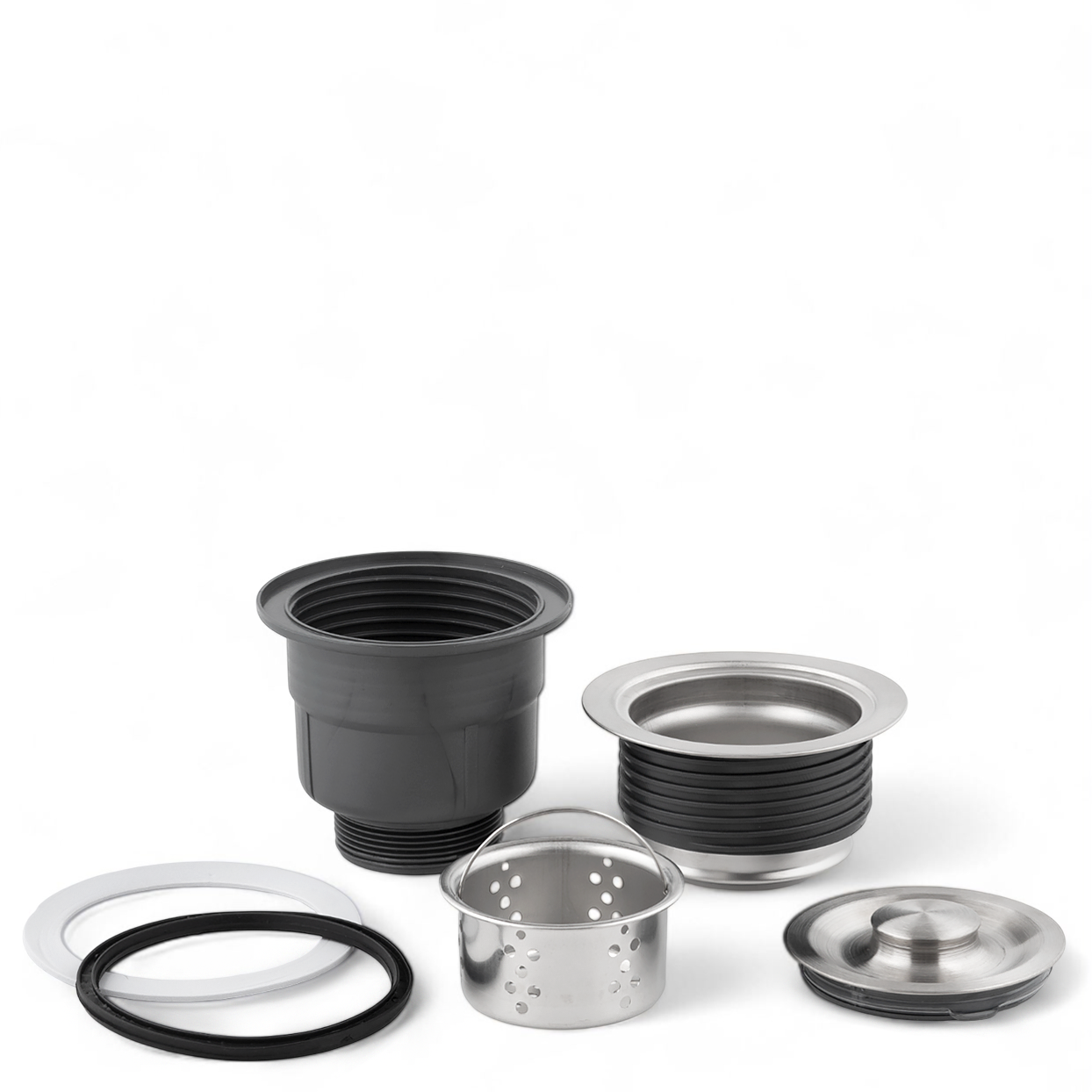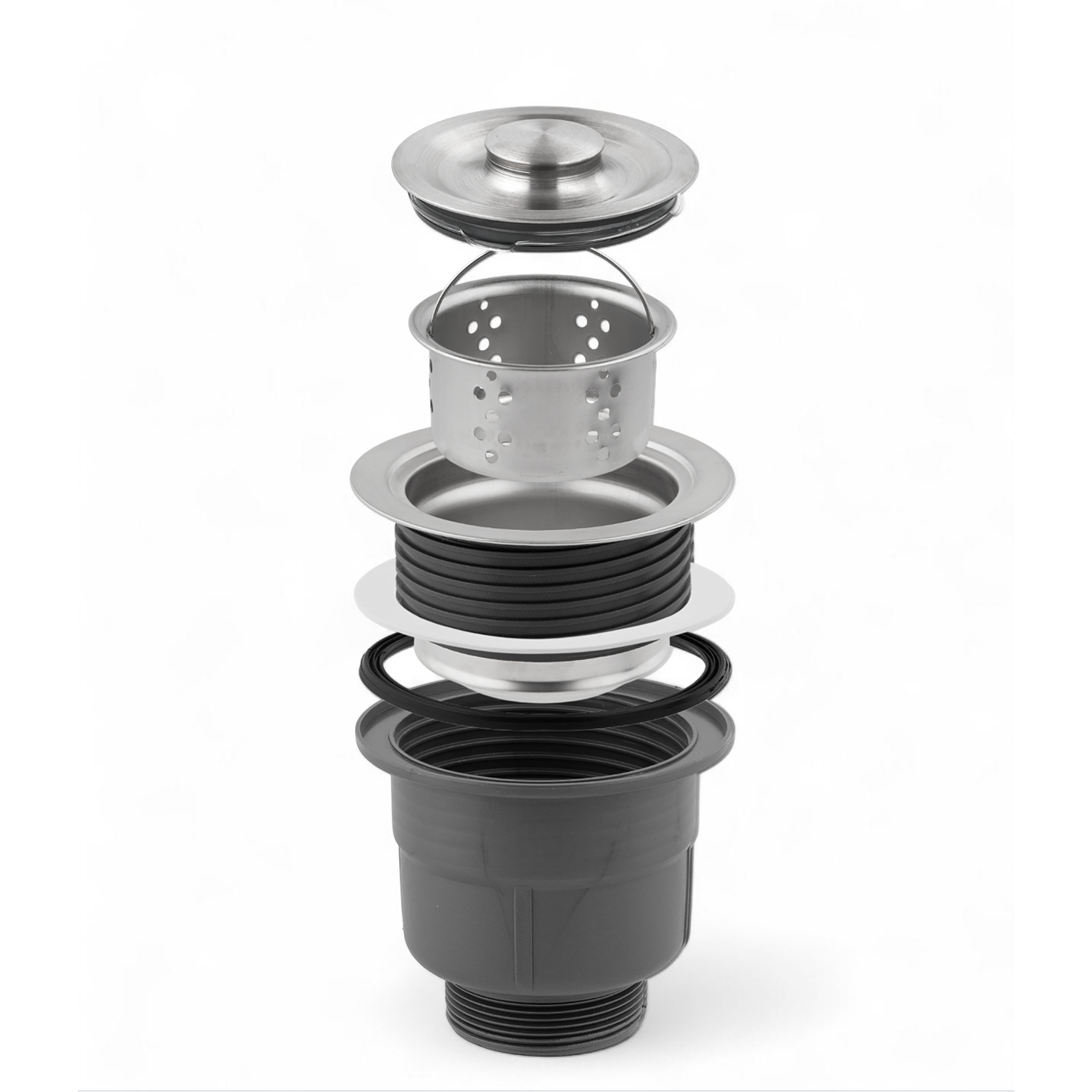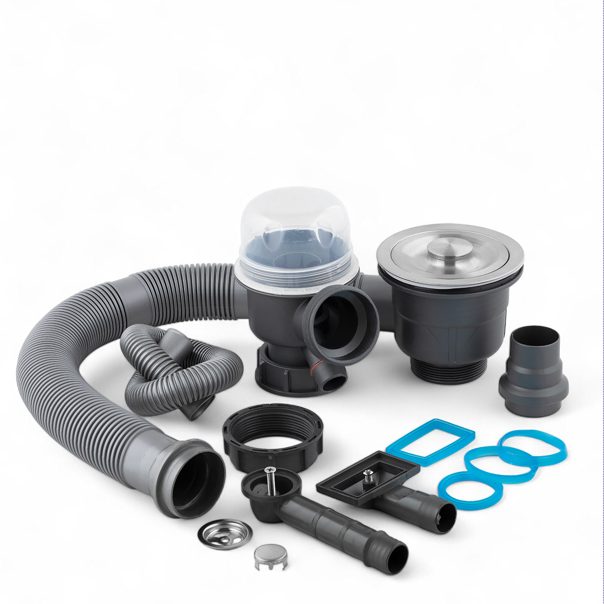 Сифон для раковины на кухню с переливом для всех типов моек. Сифон для каменной мойки с переливом верхняя часть сатин - это идеальный выбор для тех, кто ценит комфорт и удобство во время использования кухонной мойки. Сифон сконструирован под диаметр сливного отверстия 90 мм, имееет глубокую горловину и бутылочный тип, что обеспечивает хорошую пропускную способность и формирование гидрозатвора. Горловина оснащена съемной корзиной для мусора, которые позволяют легко удалять отходы из раковины. Конструкция сифона проста в установке, позволяет легко снимать отстойник и чистить его в случае засорения. Сифон выполнен из высококачественного пластика ABS с гидрозатвором, предотвращающим проникновение запахов из канализации. Крышка для сифона в комплекте. Благодаря всем этим преимуществам, наш сифон станет незаменимым помощником на вашей кухне. Он поможет поддерживать чистоту и порядок, а также обеспечит комфорт и удобство при использовании кухонной мойки. Диаметр верхней чаши 110 мм, высота чаши слива 100 мм, длина резьбы чаши 38 мм, высота бутылочной части 156 мм, нижняя гофра 650 мм, гофра перелива 390 мм, перелив для нержавеющей мойки 62,5х40 мм., перелив для каменной мойки Ø 40 мм, длина 115 мм. Соединительные резьбы 56 мм. Сливной диаметр 35-50 мм